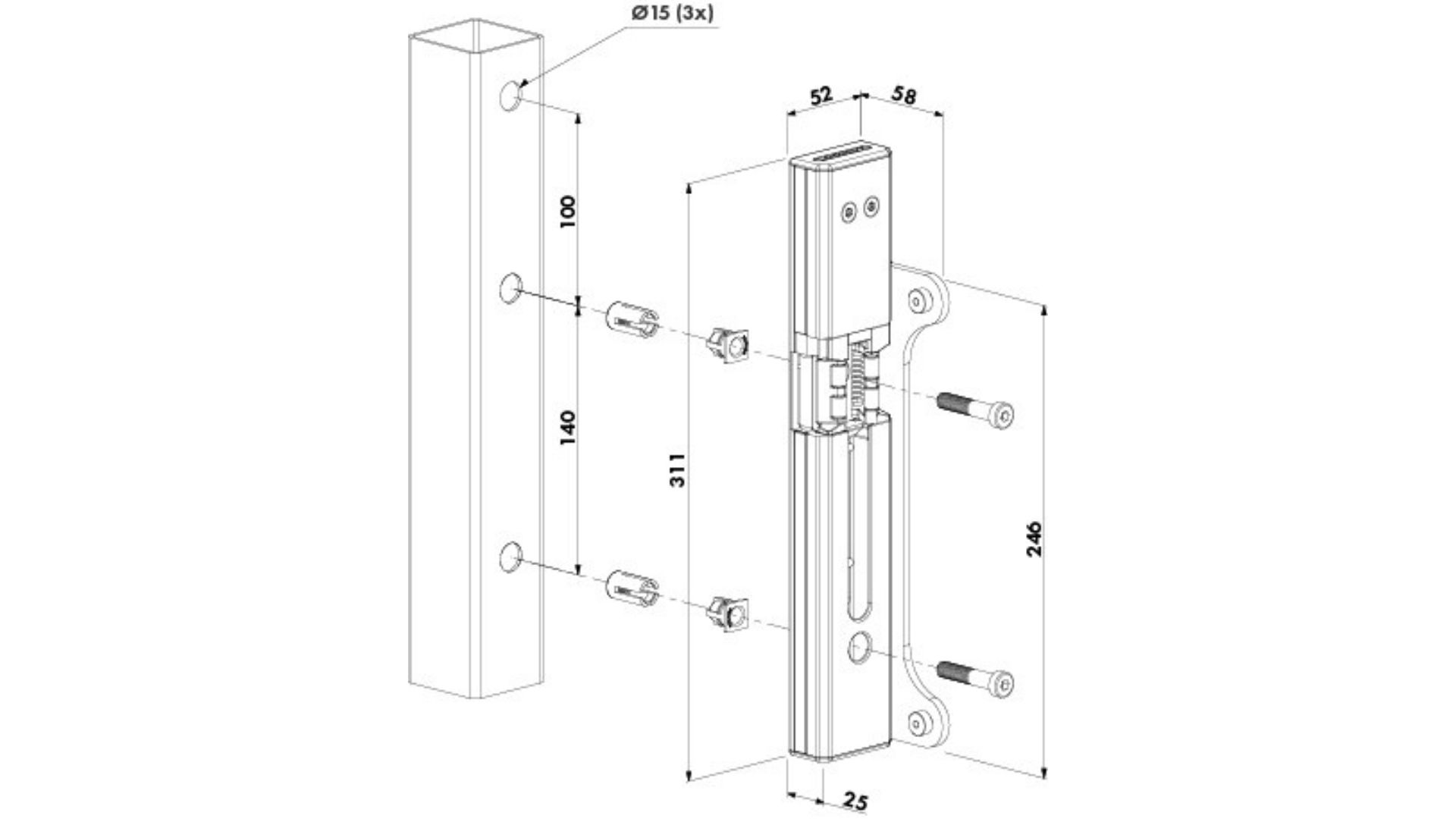 Nadgradna električna prihvatnica jednostavna za ugradnju, sa suženom prihvatnom pločom za ugradbene brave. Zahvaljujući patentiranom Quick-Fix sustavu, montaža je izuzetno brza – bez potrebe za bušenjem ili laserskim rezanjem profila vrata.